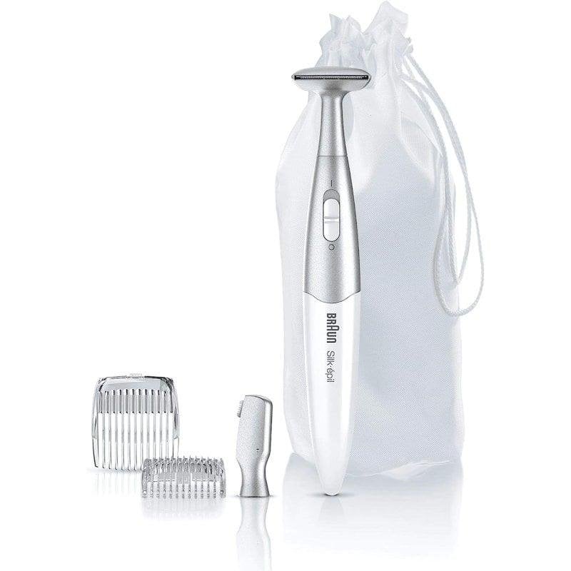 Der Silk-épil FG 1100 ist die perfekte Wahl für alle, die ein vielseitiges, präzises und einfach zu bedienendes Gerät für das Styling und die Haarentfernung an sensiblen Zonen suchen. Dank des kompakten Formats und der praktischen Zubehörteile ist er unverzichtbar für schnelle und effektive Beauty-Retuschen – jederzeit und überall!