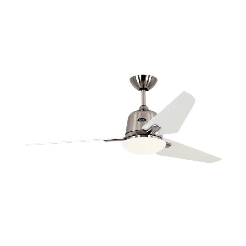 Effiziente Klimatisierung und Komfort. Der CasaFan Eco Aviatos BN-NB kombiniert einen leistungsstarken, energiesparenden DC-Motor mit einem eleganten Design in gebürstetem Chrom und Flügeln in Weiß. Mit einem Flügeldurchmesser von 132 cm sorgt er für optimale Luftzirkulation in Räumen bis zu 17,6 m² – ideal für Wohnzimmer, Schlafzimmer oder Büros.