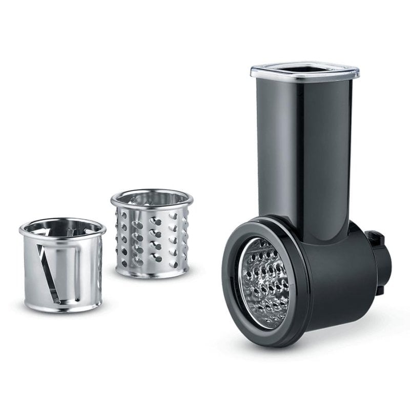 Optimaler Workflow in Ihrer Küche. Dieser hochwertige Schneideaufsatz aus Edelstahl und Kunststoff ist speziell zur Erweiterung von Severin Küchenmaschinen der Serien KM3896, KM3897 und KM3898 konzipiert. Vielseitig einsetzbar, ermöglicht er das Schneiden, Raspeln und Reiben verschiedenster Zutaten – von Gemüse bis hin zu Käse, ideal für die Zubereitung von Salaten, Beilagen oder Backzutaten.