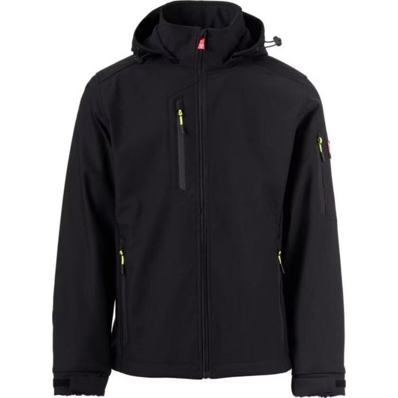 Hochwertige Materialmischung. Die Jacke besteht aus 88 % Nylon und 12 % Elasthan, was für Strapazierfähigkeit, Flexibilität und ein angenehmes Tragegefühl sorgt. Die Softshell-Membran schützt zuverlässig vor Wind und Wasser, bleibt dabei aber atmungsaktiv – ideal für wechselnde Wetterbedingungen und lange Arbeitstage.