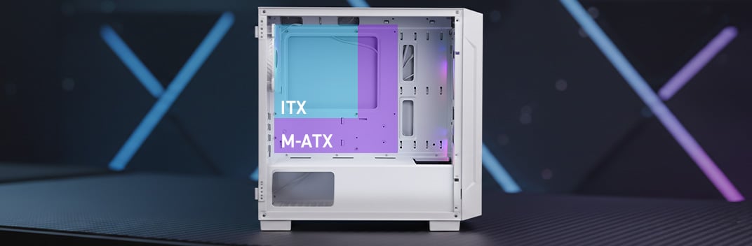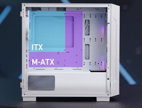 Es ist kompatibel mit M-ATX- und ITX-Motherboards und bietet Flexibilität bei der Komponentenauswahl, effiziente Kühlung und einfache Montage.